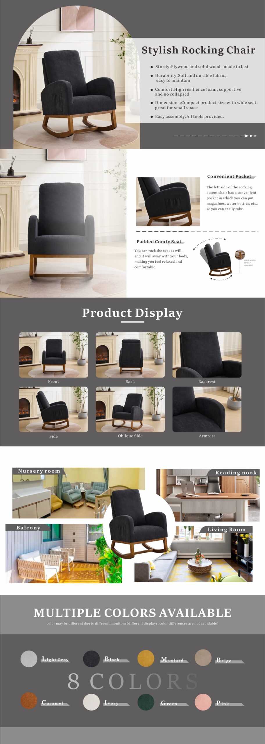 - Fabulous Comfort:Covered with high-quality polyester for a soft and breathable surface, the rocking chair brings you a luxurious yet casual sitting. A refined curved wing back provides a comfortable sitting position for you to enjoy a leisurely time.