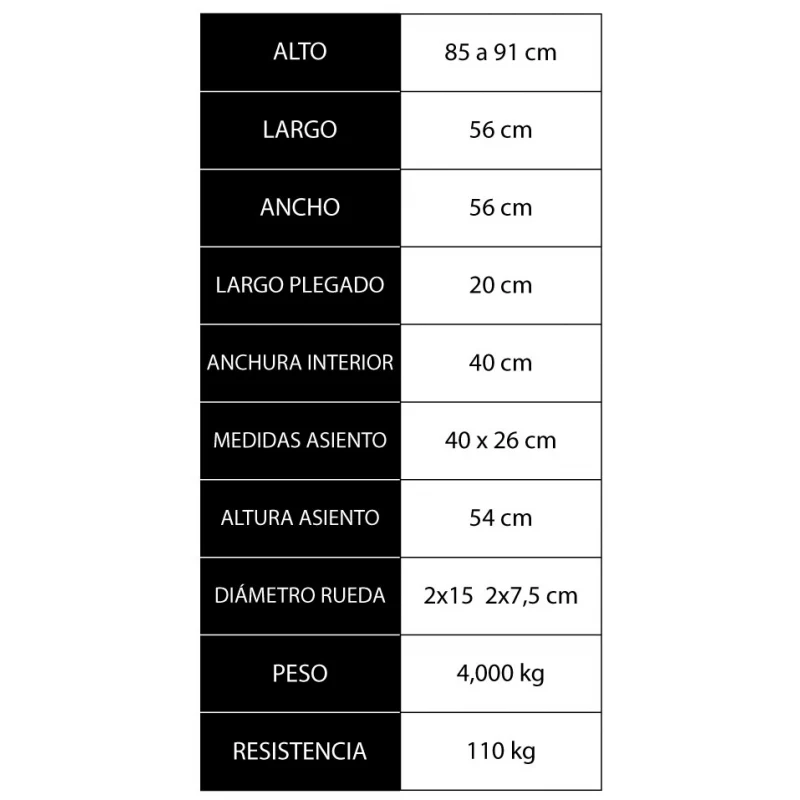 - Diámetro rueda: 2×15 y 2×7,5 cm