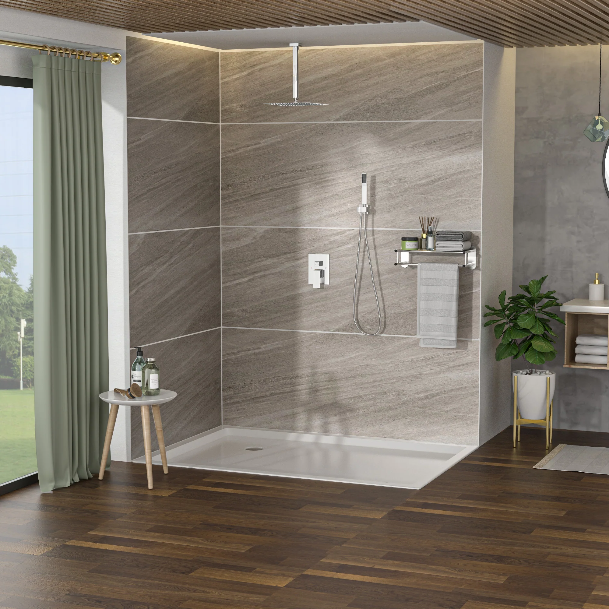 - {Cabezal de ducha tipo lluvia}Nuestro cabezal de ducha tipo lluvia ultrafino ofrece una amplia cobertura y proporciona una relajante experiencia de ducha tipo lluvia con capacidad de ajuste de 360°.