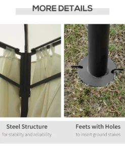 - Estructura de acero resistente: nuestra glorieta para exteriores está fabricada con una estructura de acero resistente que es menos propensa a doblarse, lo que la mantiene en buenas condiciones para un uso repetido y la hace excelente para la restauración. Puede montarse en una variedad de superficies blandas al aire libre con sus estacas incluidas, por lo que tiene opciones.