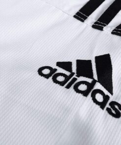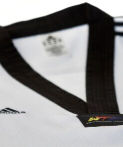 - Fabricado en Corea por Adidas en color blanco y cuello en “V” negro.