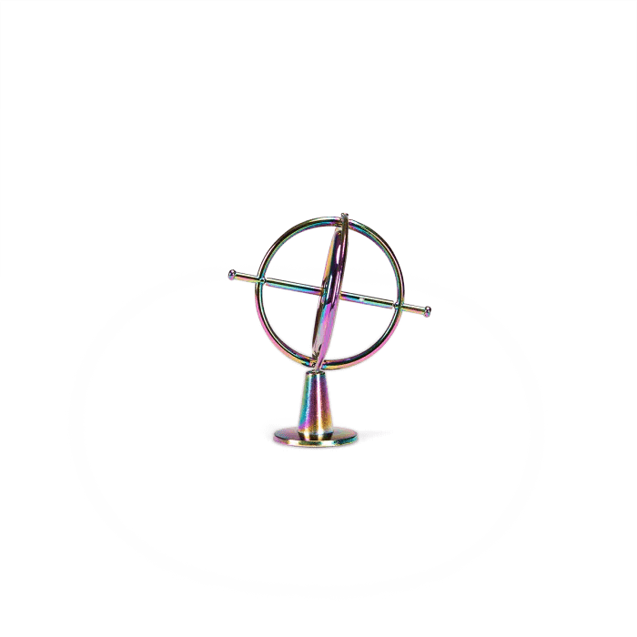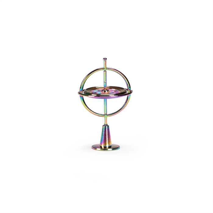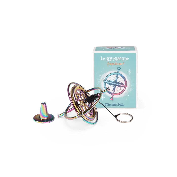 Gira la peonza más increíble con el cordón envolviéndolo alrededor del tallo. Fabricado en zinc coloreado. El giroscopio juega con la gravedad y se equilibra en la punta del dedo.