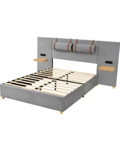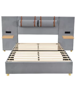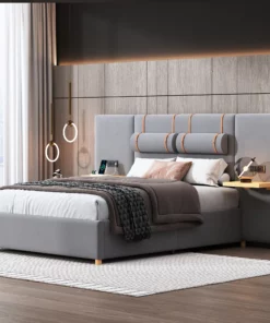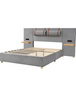 - Velvet Fabric: Upholstered in premium velvet fabric available in two sophisticated colors: beige and grey, enhancing both comfort and elegance.Queen size bed frame with a sturdy construction supporting up to 500lbs, providing ample space and durability..