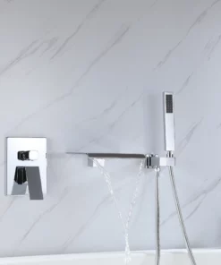 - 1. Caño en cascada: el caño largo de canal abierto llena la bañera de manera rápida y sin esfuerzo y crea una hermosa declaración de cascada, un elemento sensual y dinámico para su experiencia de baño.