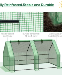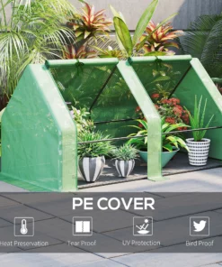 - Mantenga las cosas buenas adentro: nuestro pequeño invernadero ayuda a retener el calor durante los meses más fríos. Su cubierta de PE de 140 GSM de dos capas presenta una rejilla de refuerzo en el medio para evitar desgarros. Protege las plantas de los rayos UV y permite que el 85% de la luz solar nutritiva pase ininterrumpidamente.