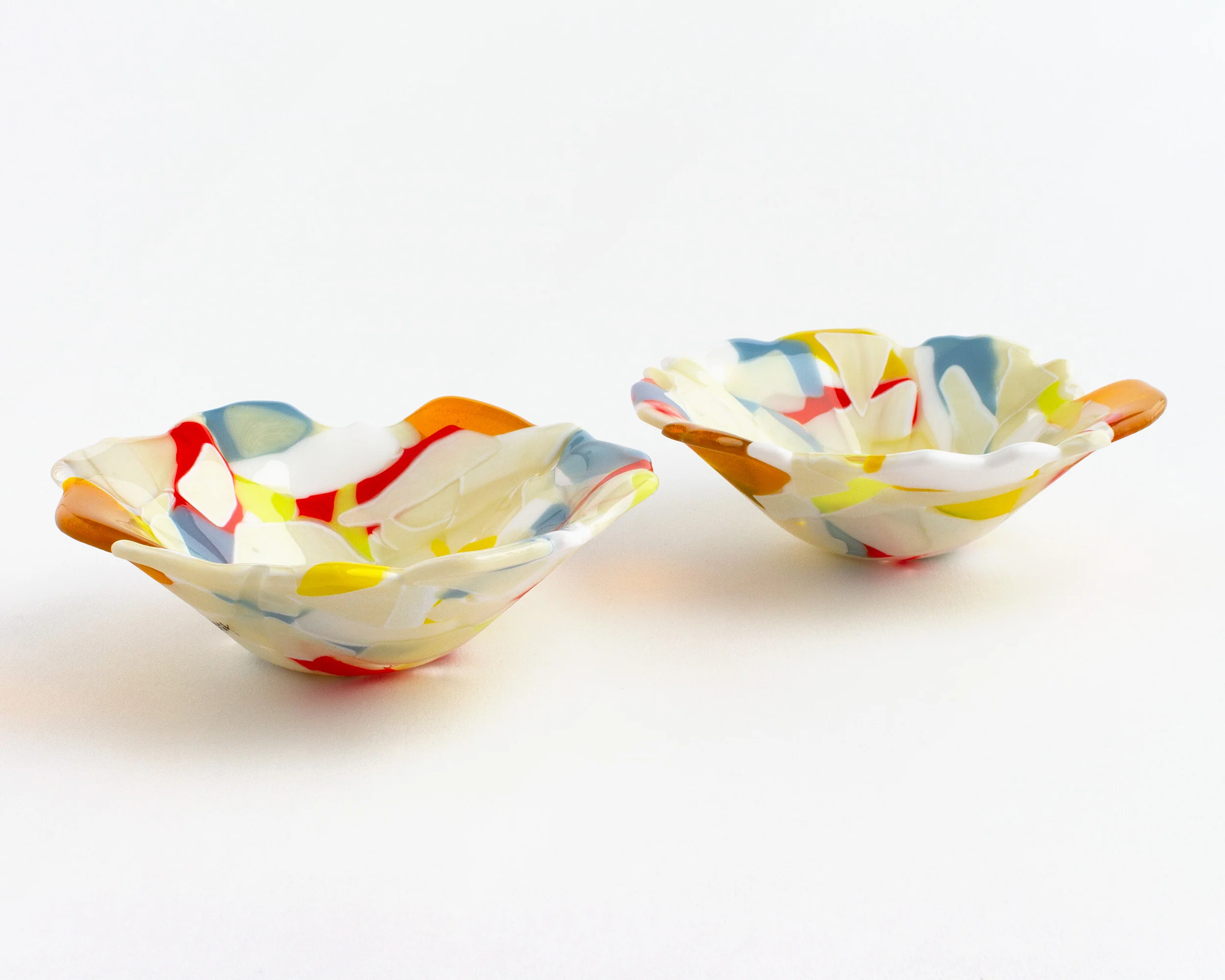 Mini Bowls Multicolor – Set 2 Piezas; Colección Aglomerado de Reez: Celina Re + Juan López, diseño hecho a mano, Albaicín, Granada, España. Técnica: “vitrofusión” “vidrio fundido” “cristal fundido”