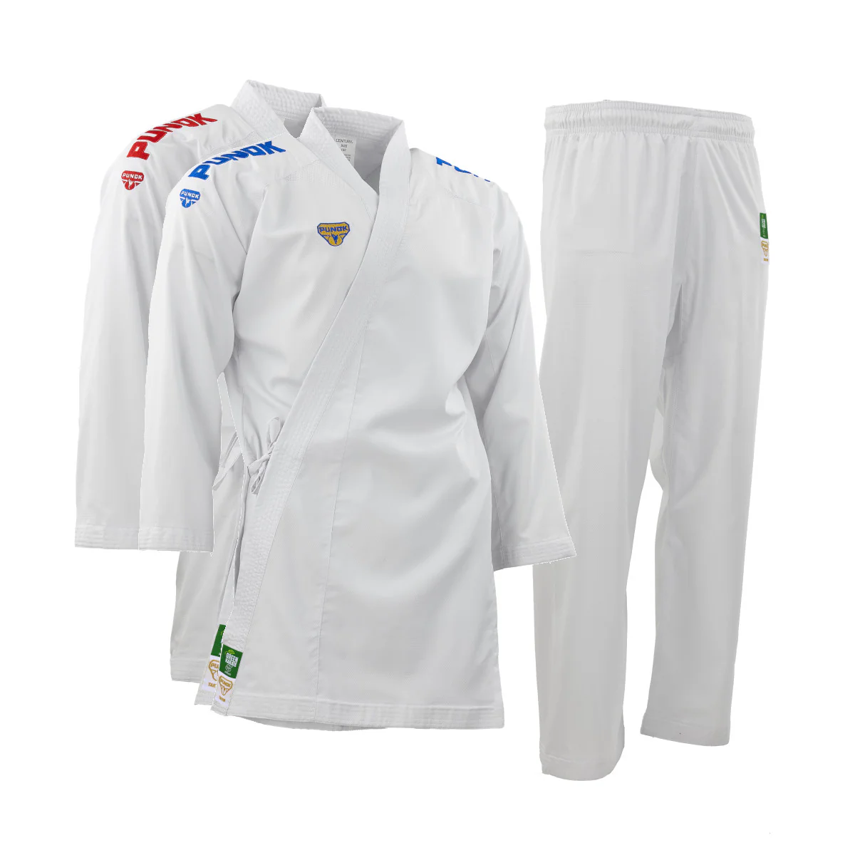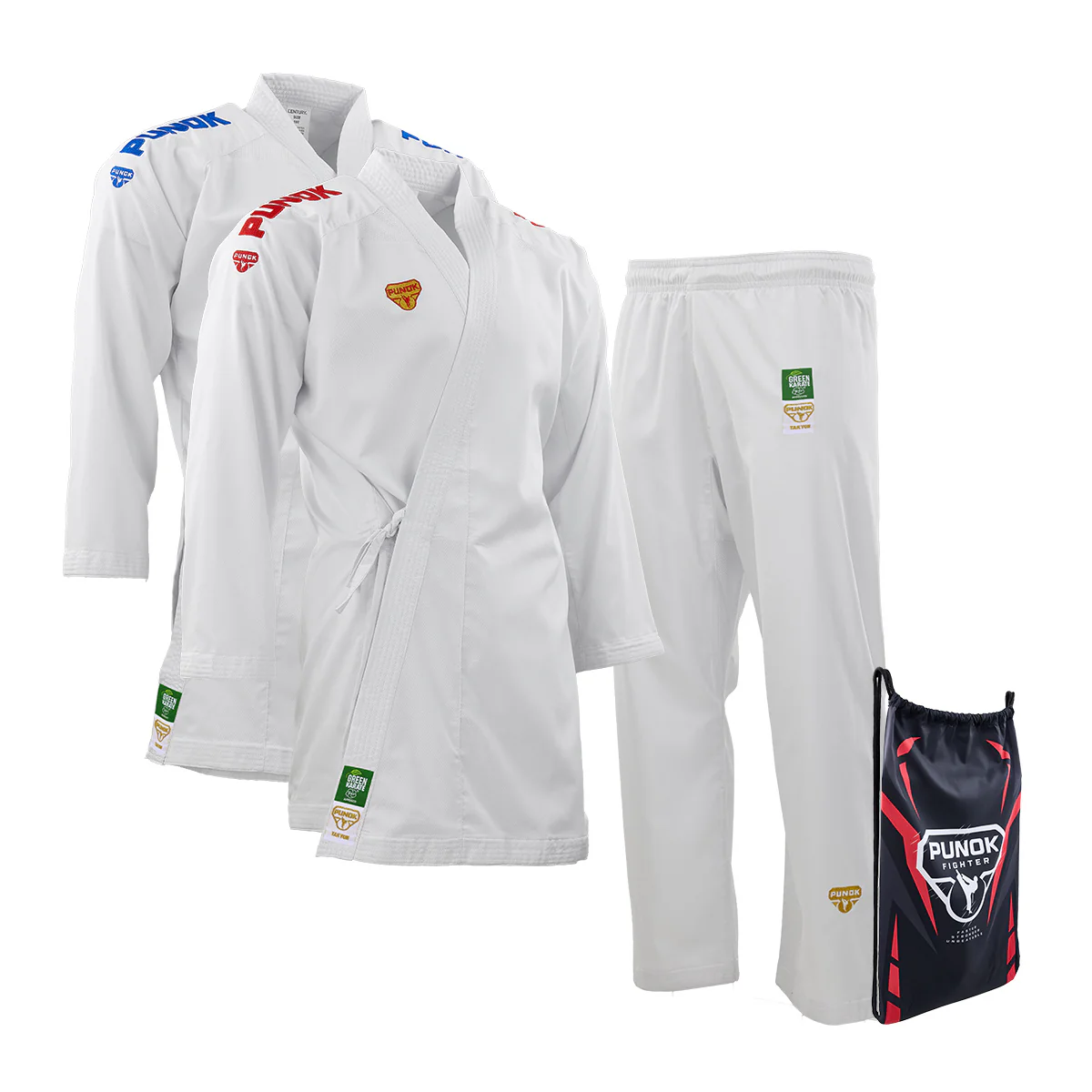 ¡El nuevo set PUNOK Takyon Kumite Karategi! Este conjunto Gi ultraligero y de alta calidad maximiza tus movimientos, haciéndote más rápido y ágil.