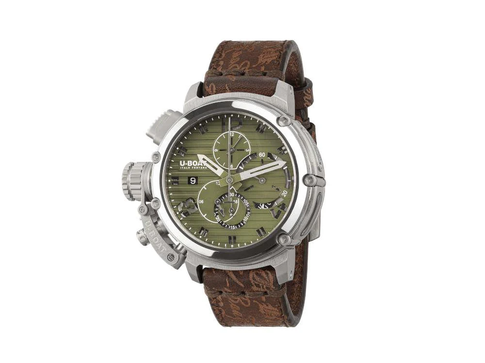 - Llega la exclusiva serie Chimera Chrono de U-Boat, diseñada para aquellos que buscan una presencia única en su muñeca. Con un impresionante cristal de zafiro y un bisel de tungsteno pulido, cada modelo presenta un patrón de rayas tridimensional en tonos de negro, verde y azul. ¡Solo 300 unidades disponibles por diseño!